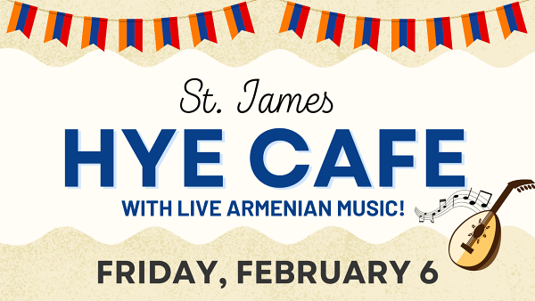 Save the date and join for Hye Cafe, featuring delicious Armenian food, fellowship, and live Armenian music! Doors open at 6:15pm – Kitchen opens at 6:30pm. Table reservations for parties of 6 or more may be made by calling the Church office at 617.923.8860 no later than 4pm on Thursday, February 5th.