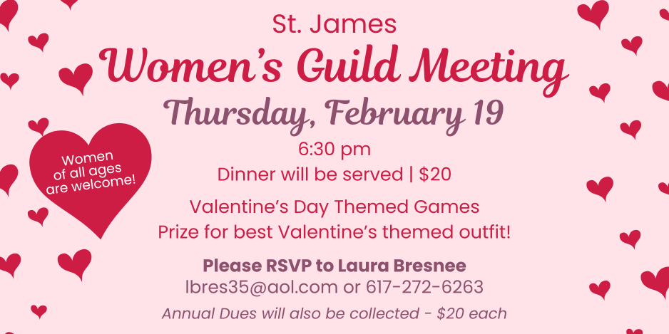 Please note the following updates: The St. James Church Offices & Center are closed on Monday, January 26th. The Book Club gathering scheduled for Monday, January...