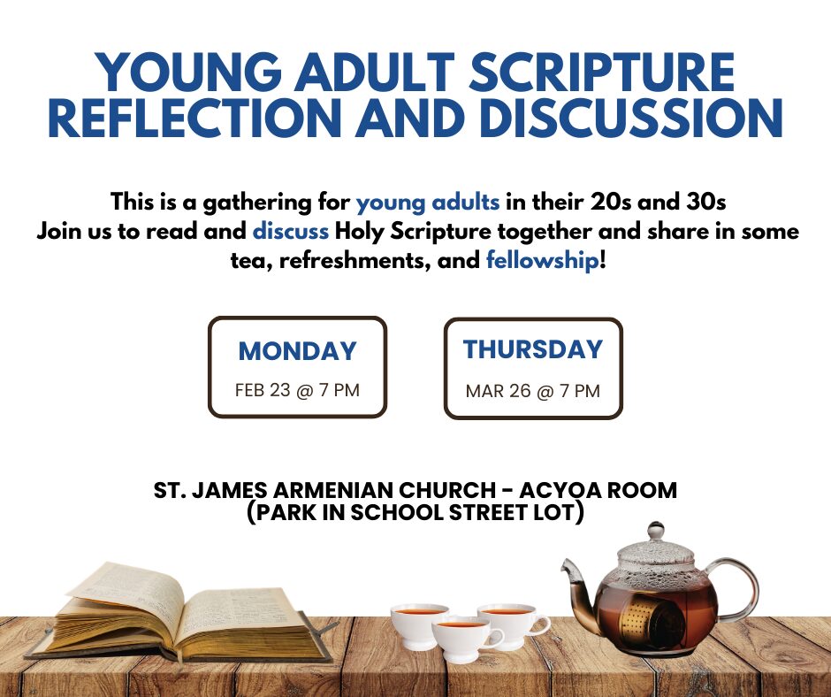 Join us for a traditional Armenian Khash breakfast! Khash is a hearty bone-broth style soup, served with crispy lavash, garlic, salt, and more. Due to the long process involved in its preparation, fellowship gatherings around the khash table are also part of the tradition. All are welcome. View flyer. Advance reservations are required by February 14th. $75 per person, includes khash, continental breakfast, Continue Reading
