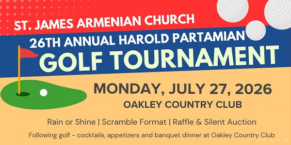 Registration is open for the 26th Annual St. James Harold Partamian Golf Tournament, hosted by our Men's Club. Scramble Format - limited to the first 132 golfers.